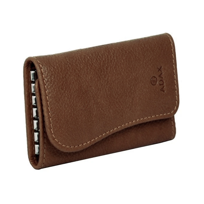 En klassisk lækker nøglepung fra Adax i ægte cognac farvet skind med plads til 6 nøgler. Nøglepungen er med tryklås og er indvendigt udstyret med 6 kroge der giver mulighed for god opbevaring af nøgler så du beskytter din lomme og ikke mindst de andre ting du har i lommen mod at blive ridset.