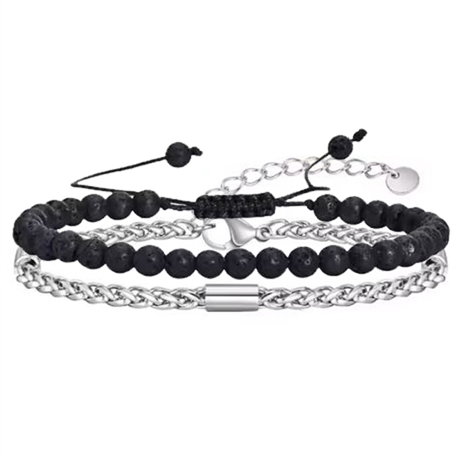 Armbånd sæt Lavasten og Sølvtonet stål med vedhængArmbånd sæt Lavasten og Sølvtonet stål med vedhæng