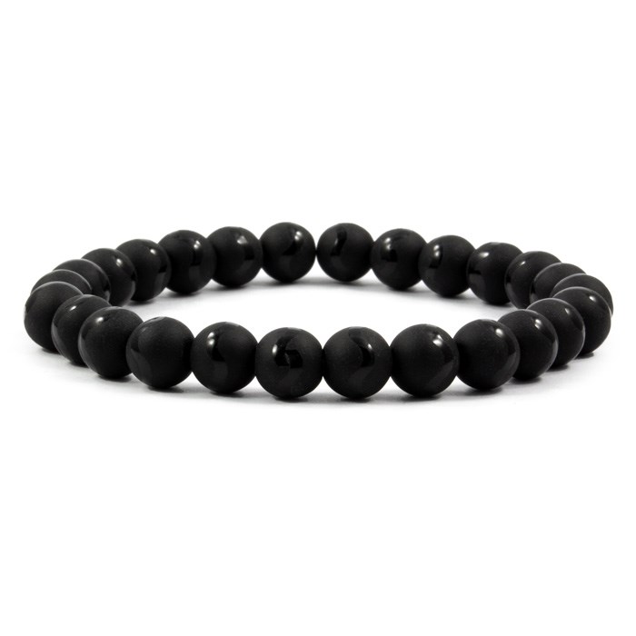 Armbånd Sten Sort Agat Semi Mat Mønstret 8 mm