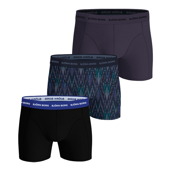 Björn Borg Cotton Stretch Boxer 3-Pack Underbukser Sort / Grå / Blå