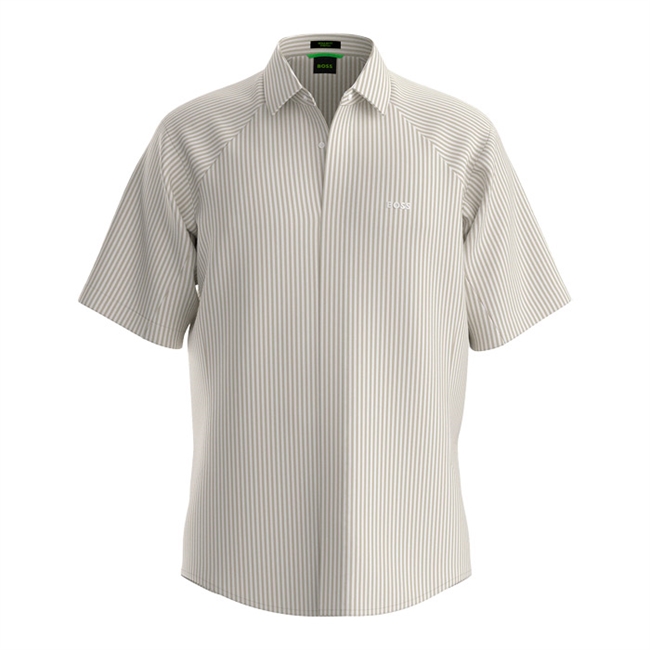 Stribet kortærmet skjorte i hvid / beige fra BOSS