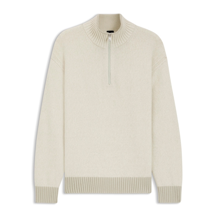 Pæn half zip sweatshirt i farven lys beige fra BOSS