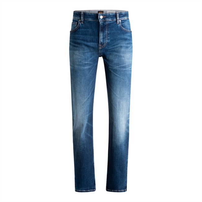 Smarte mørkeblå jeans i vasket blå farve fra BOSS
