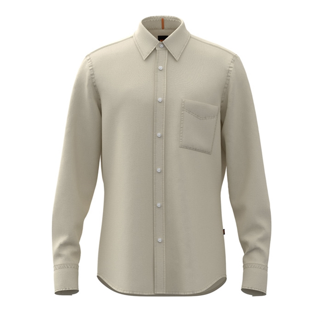 Opdag tidløs elegance med denne beige hørskjorte fra BOSS. Fremstillet af førsteklasses hørstof, bringer denne skjorte en fornemmelse af luksus til din garderobe. Med sit klassiske design og subtile farve passer den perfekt til både formelle og afslappede anledninger. BOSS' fokus på kvalitet og detaljer skinner igennem med hver syning og finish. Tilføj et strejf af raffinement til din stil med denne uundværlige beige hørskjorte fra BOSS.