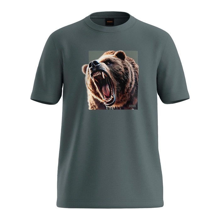 Klassisk duset grøn t-shirt med print af en bjørn i fronten fra BOSS