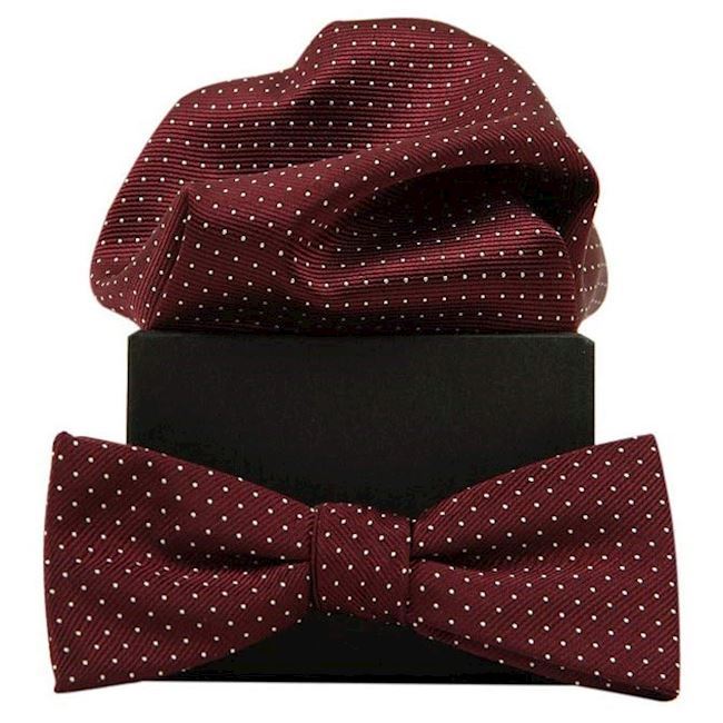 Prikket bundet vinrød butterfly fra Connexion med matchende lommeklud.