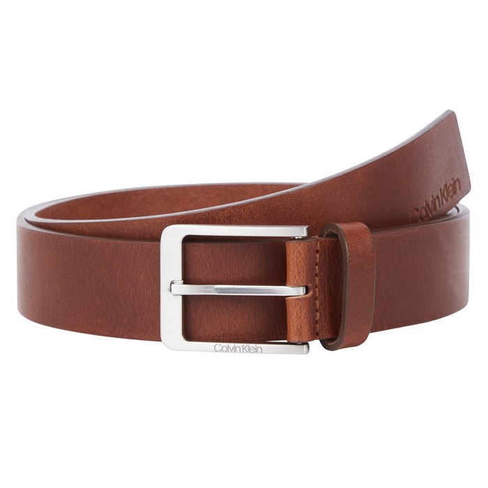Stilrent og enkelt herre bælte i dark tan læder fra Calvin Klein. Stålspændet giver en flot detalje til det klassiske glatte læder
