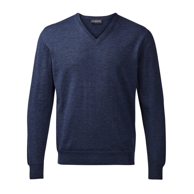 Clipper Merino V-Hals Strik Blå Melange