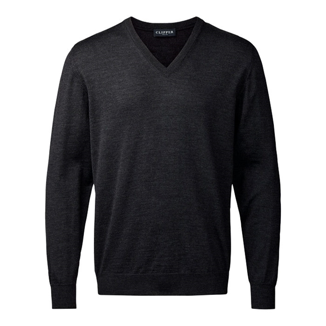 Clipper Merino V-Hals Strik Mørkegrå