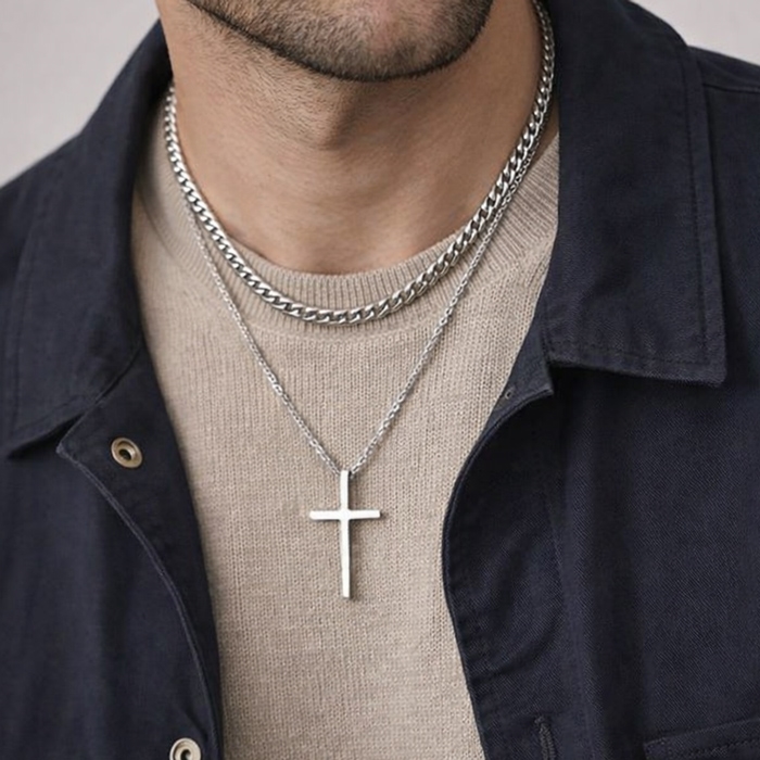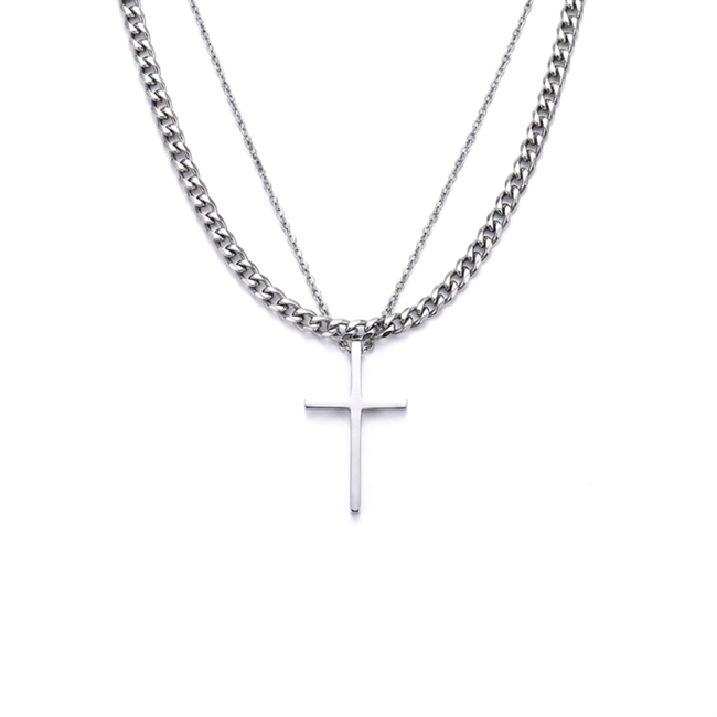 Halskæde Dobbelt design med Kors & sølvtonet kæde 5mmHalskæde Dobbelt design med Kors & sølvtonet kæde 5mmHalskæde Dobbelt design med Kors & sølvtonet kæde 5mm