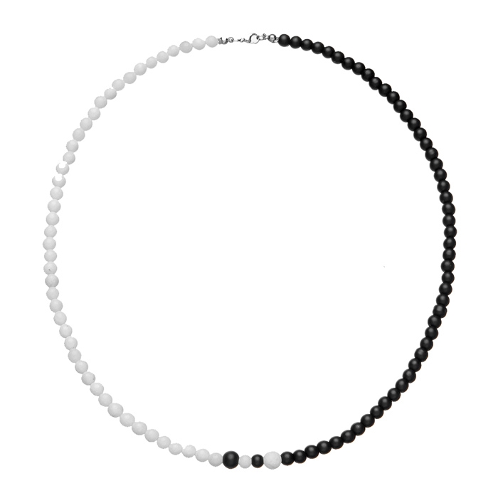 Unik designet perlehalskæde udført med sorte og hvide perler.