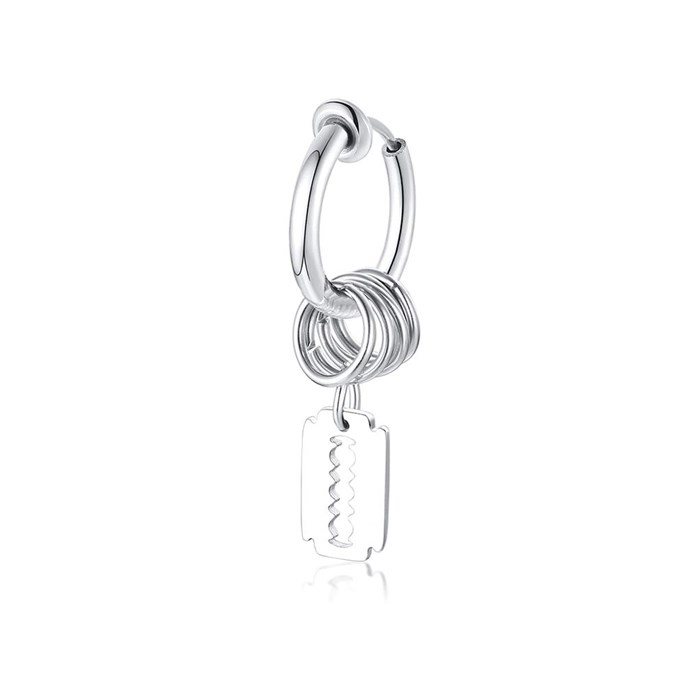 Smart ørering designet med 4 løse ringe og et lille barberblad. Øreingen kan bruges som den er med vedhæng eller uden vedhæng som den stilrene og enkelte ørering med et klassisk udtryk.