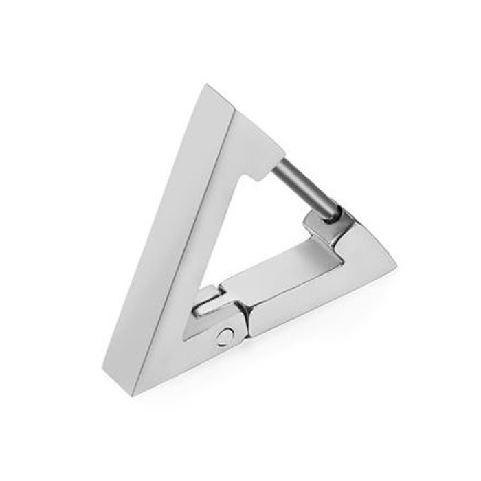 En moderne ørering i rustfrit stål med et trekantet design der gør udtrykket trendy og unikt.