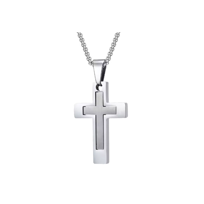 En lækker korshalskæde med et to-tonet design hvor centerdelen af korset er mat og yderkanterne er blankpoleret.