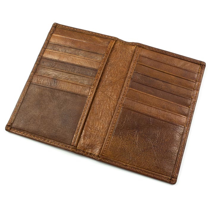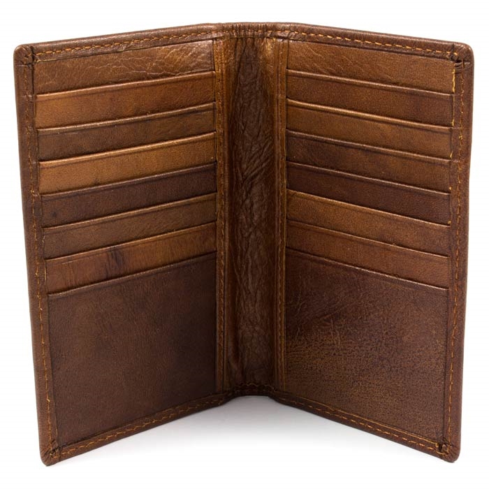 Denne nøddebrune læder kortholder har hele 14 rum til kort og 2 store rum der giver plads til sedler m.m.