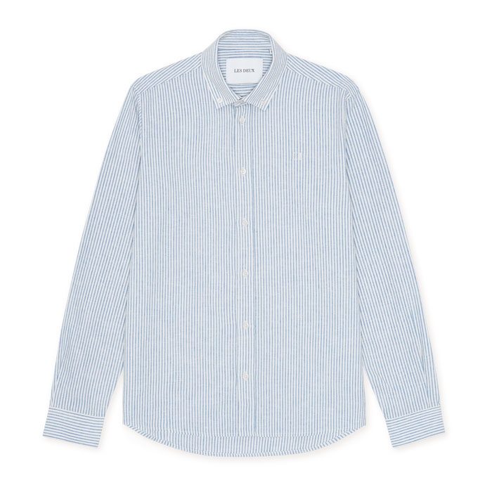 Les Deux Konrad Bomuld/Hør Skjorte Blåstripet