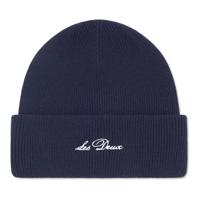 Les Deux Wayne Embroidered Beanie Mørkeblå