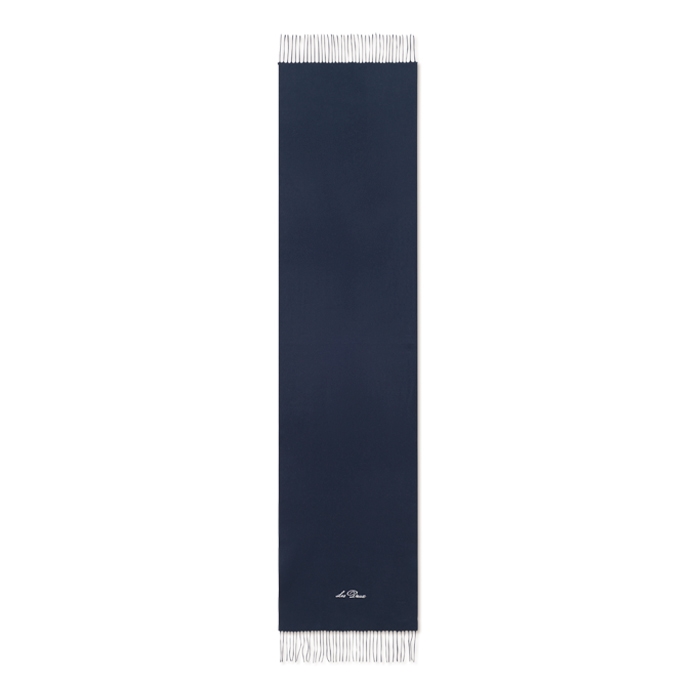 Klassisk stilrent tørklæde i mørkeblå fra Les Deux med broderet kursiv logo