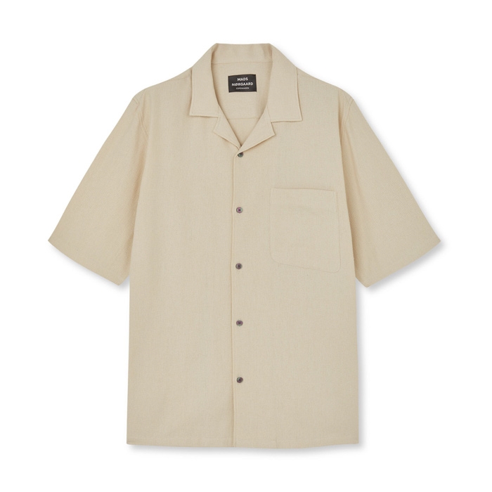 Moderne kortærmet skjorte i sandfarve fra Mads Nørgaard