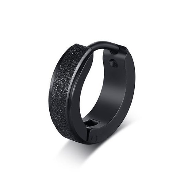 En flot sort ørering til mænd, med en unik ru overflade, der giver den et mere maskulint udtryk.