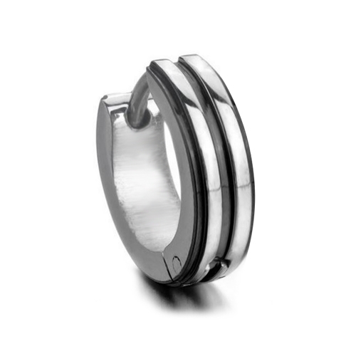 En helt klart smart designet ørering til mænd med et unikt design i sort og sølv.