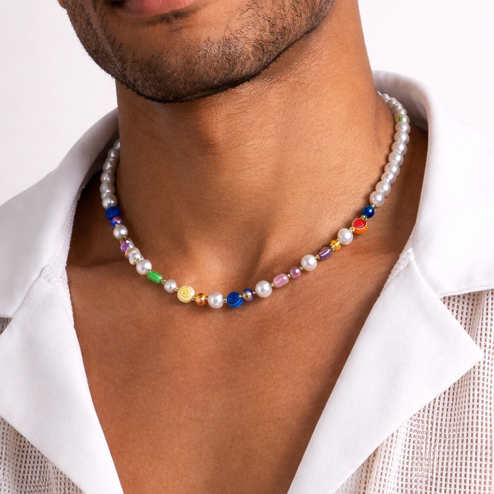 Perlehalskæde med flerfarvede perlerPerlehalskæde med flerfarvede perler