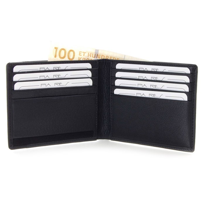 En pung der ikke tager for meget plads i lommen og har plads til mindst 8 kort og har 2 seddelrum.