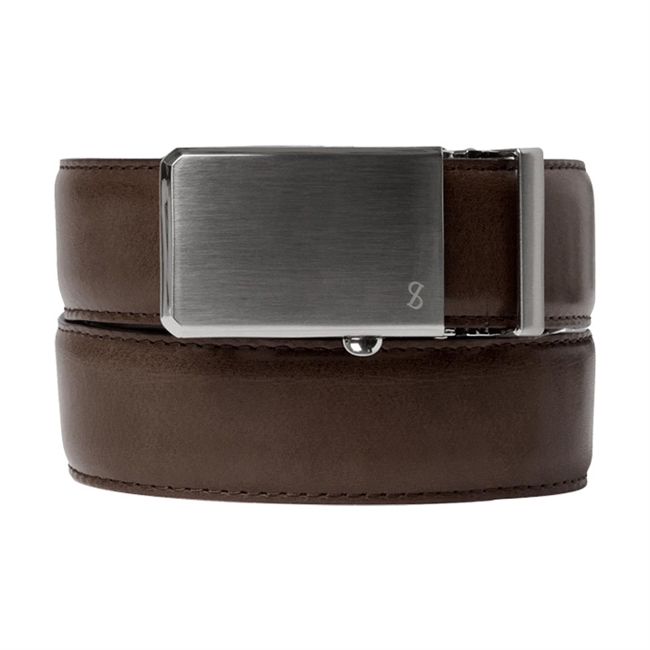 Moderne mørkebrunt læder bælte med interlock spænde fra Saddler
