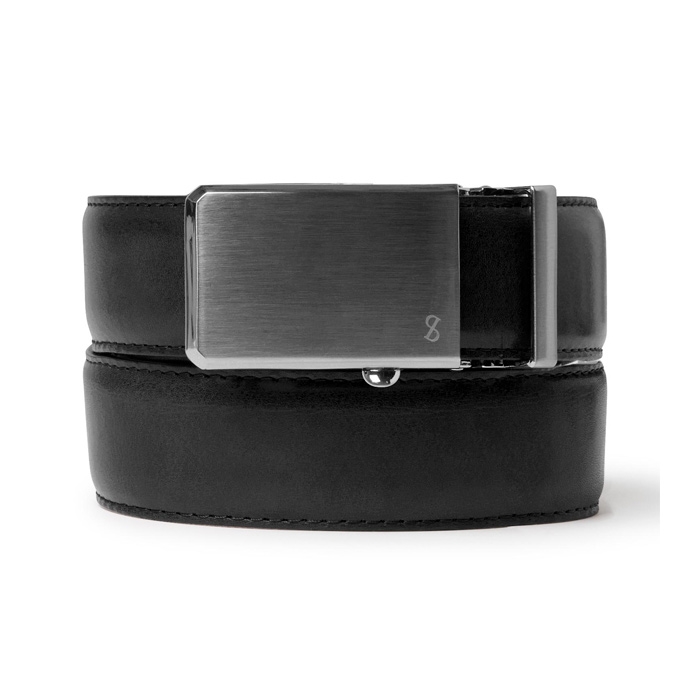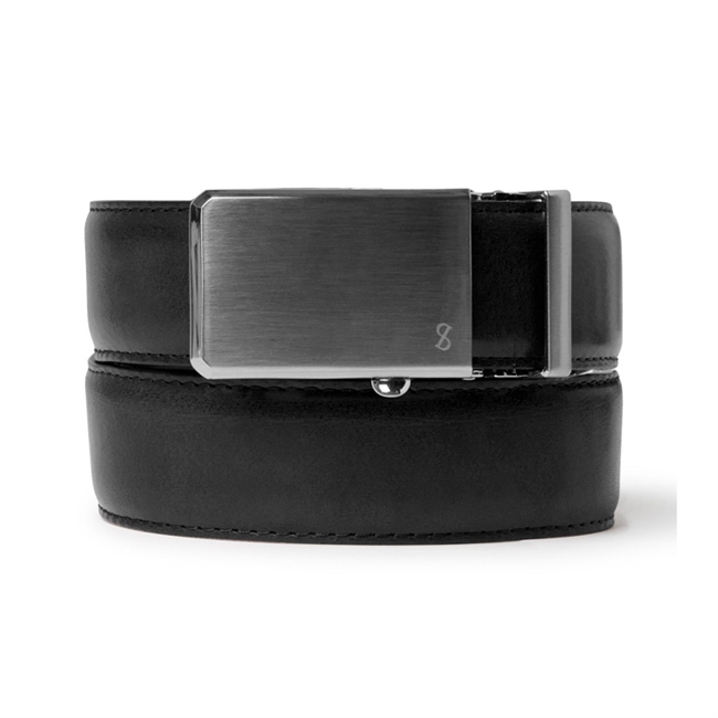 Moderne sort læder bælte med interlock spænde fra Saddler