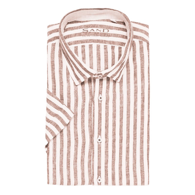 Flot beige og hvid stribet kortærmet skjorte Sand.