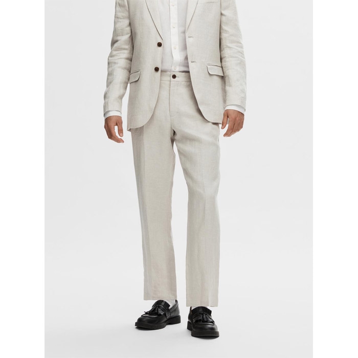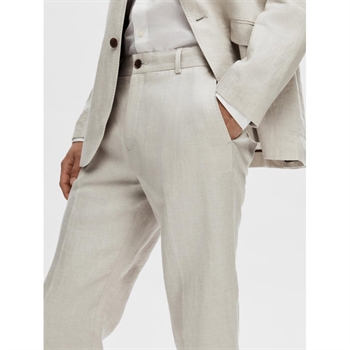 Let hør jakkesætsbuks fra Selected i lys sandfarve.