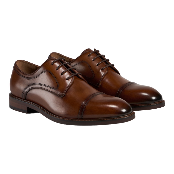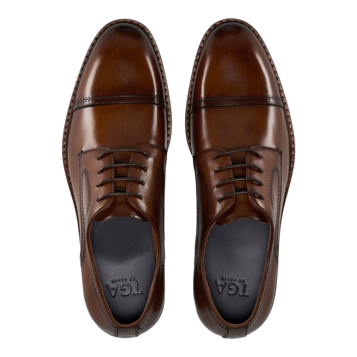 TGA Semi Brouge Derby Læder Sko Cognac