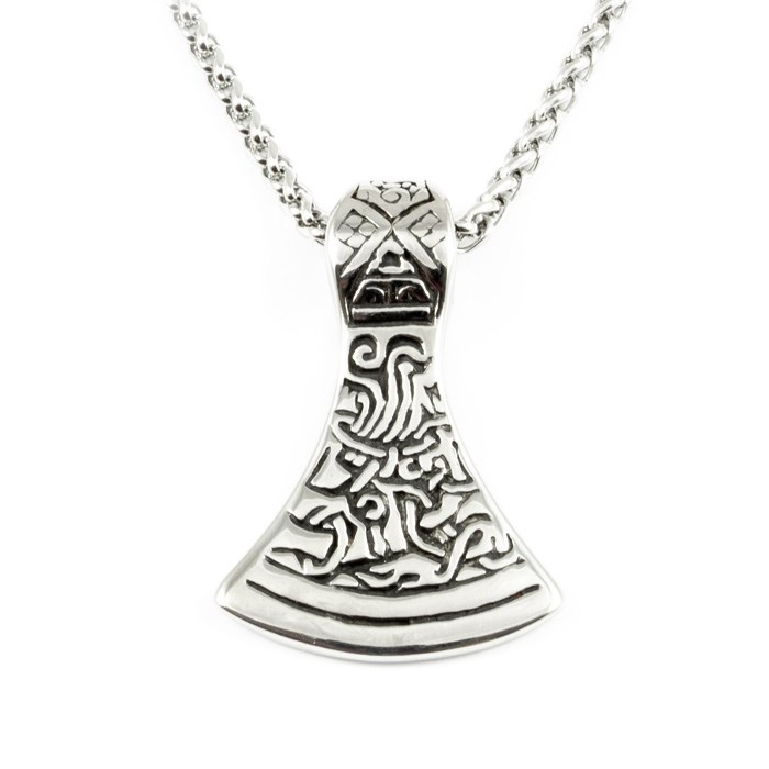Klassisk flot vikinge smykke designet med en thors hammer i blankt stål med unikt mønster.