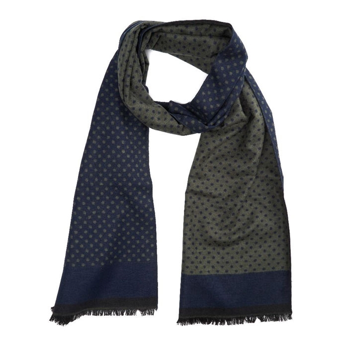 Casual herre tørklæde designet i grønne og blå farver med et prikket design, tørklædet kan nemt matches med de fleste outfit.