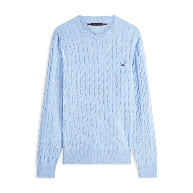 Tommy Hilfiger Classic Cable Crew Neck Strik Lyseblå
