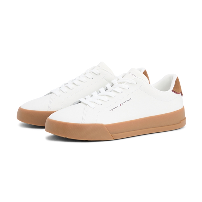 Klassisk hvid sneaker med brune detaljer fra Tommy Hilfiger