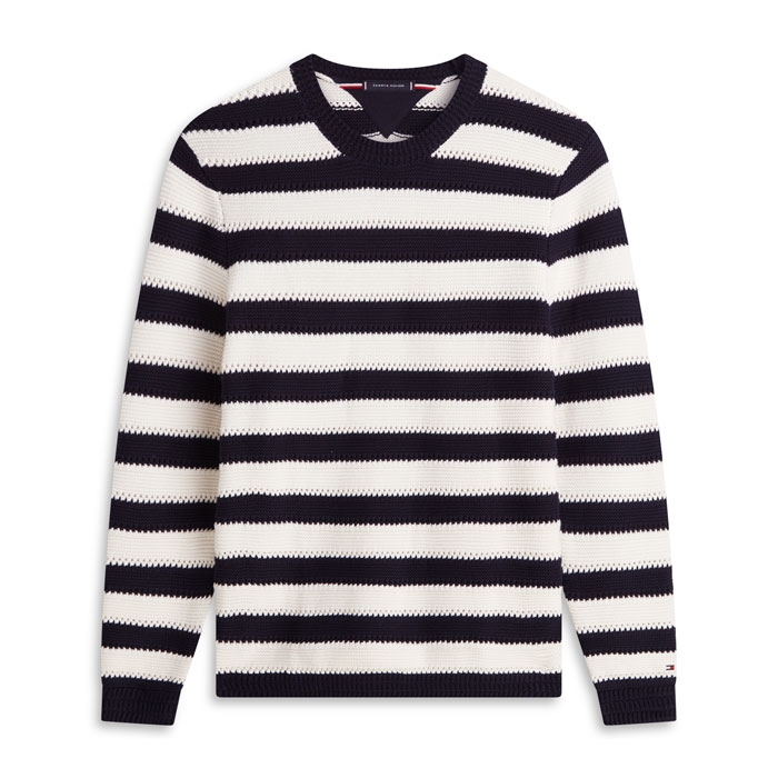 Moderne stribet strik i navy / off white fra Tommy Hilfiger