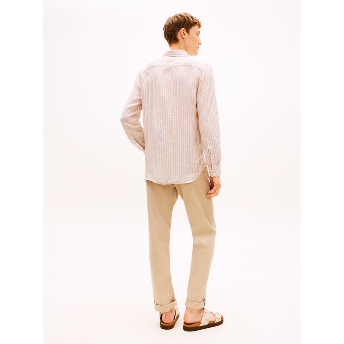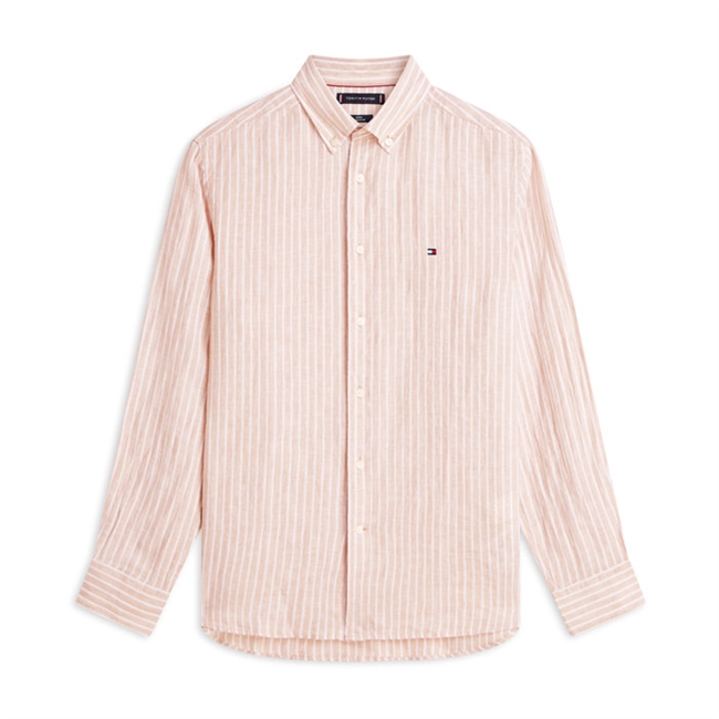 Tommy Hilfiger Hør Bengal Stribet Skjorte Sandfarvet