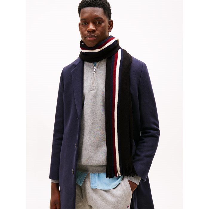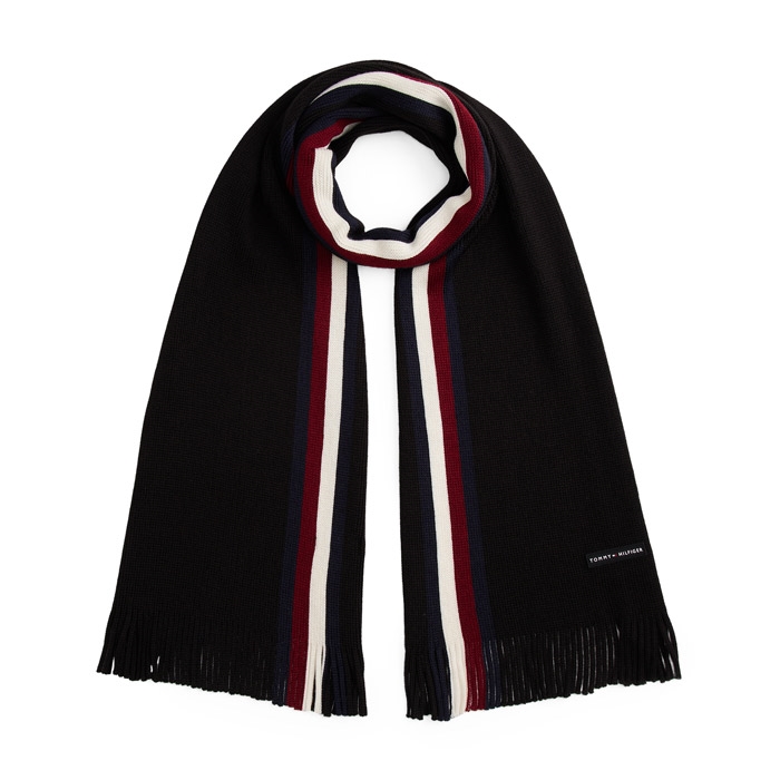 Stilrent sort tørklæde fra Tommy Hilfiger med brandets ikoniske striberStilrent sort tørklæde fra Tommy Hilfiger med brandets ikoniske striberStilrent sort tørklæde fra Tommy Hilfiger med brandets ikoniske striber