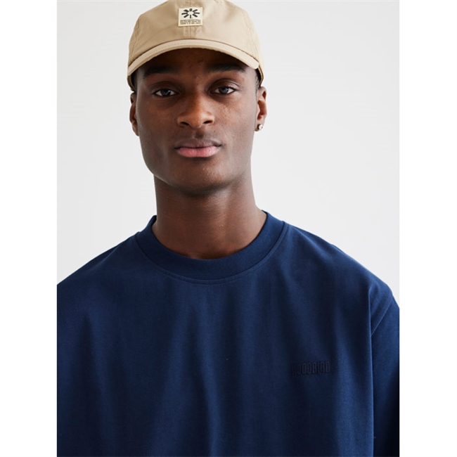 Mørkeblå basis t-shirt fra Woodbird med lille logo broderi.