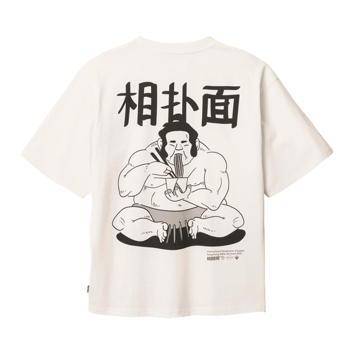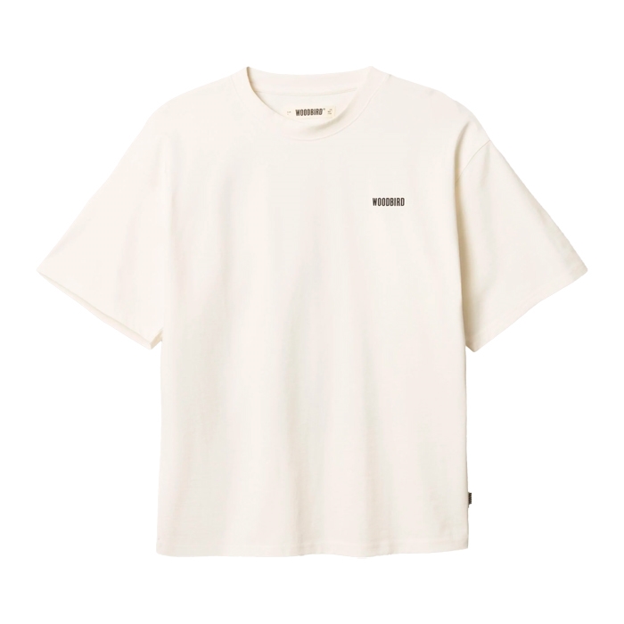 Moderne hvid t-shirt med print på ryggen fra WoodbirdModerne hvid t-shirt med print på ryggen fra Woodbird