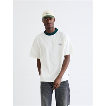Bred hvid t-shirt med print på front og ryg i grønne farver fra Woodbird.Bred hvid t-shirt med print på front og ryg i grønne farver fra Woodbird.Bred hvid t-shirt med print på front og ryg i grønne farver fra Woodbird.Bred hvid t-shirt med print på front og ryg i grønne farver fra Woodbird.